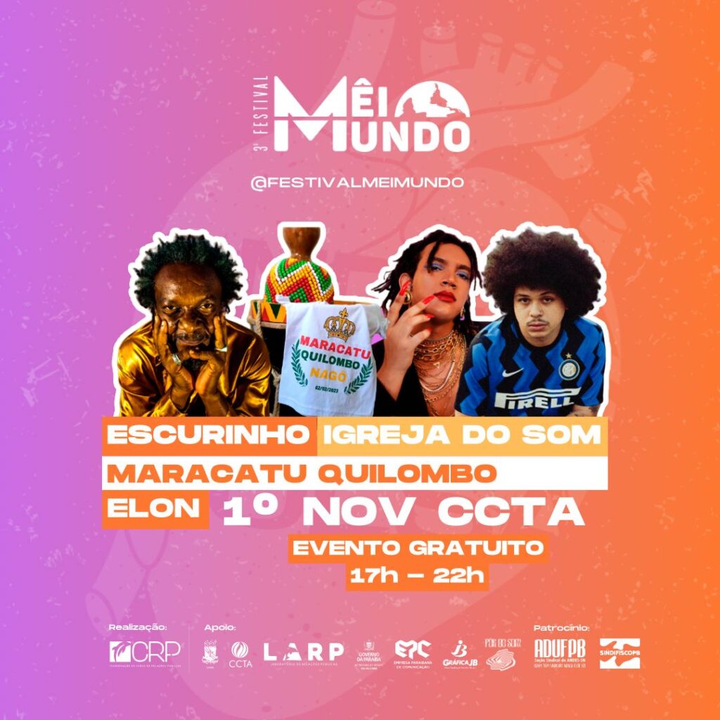 O Centro de Comunicação, Turismo e Artes (CCTA) da UFPB recebe, no dia 1º de novembro, mais uma edição do Festival MêiMundo. Com o tema “Onde a arte pulsa”, a edição 2023 traz o resgate do Centro como um lugar rico em arte e cultura dentro da Universidade.