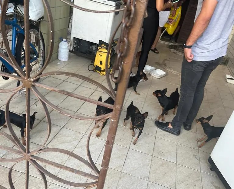 Quinze cães da raça Pinscher foram resgatados de um canil clandestino localizado no Bairro dos Estados, em João Pessoa.