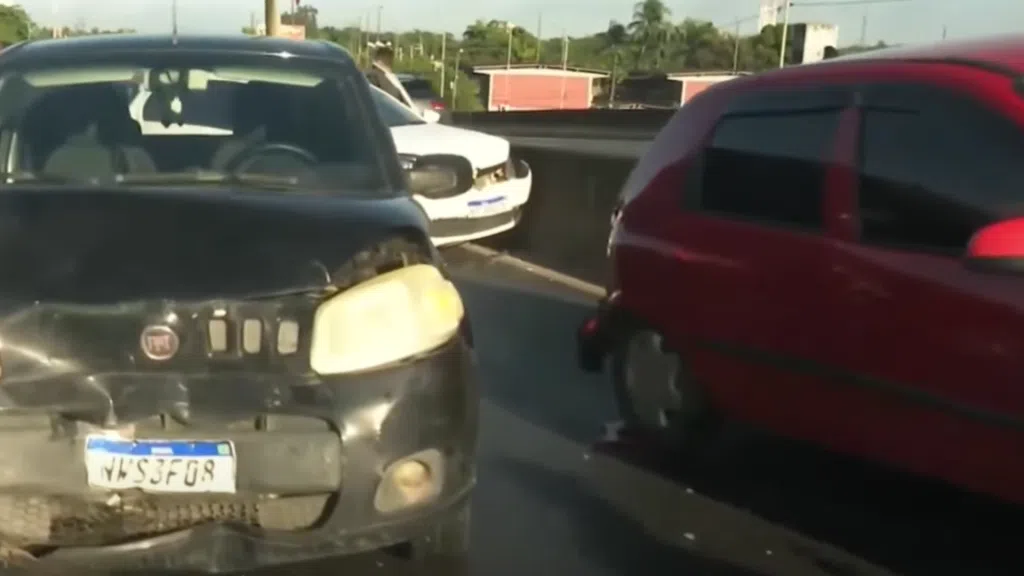 Um engavetamento com oito veículos deixou o fluxo de veículos congestionado na BR-230, em João Pessoa. O acidente aconteceu em cima do viaduto do Geisel, no sentido João Pessoa para Cabedelo.