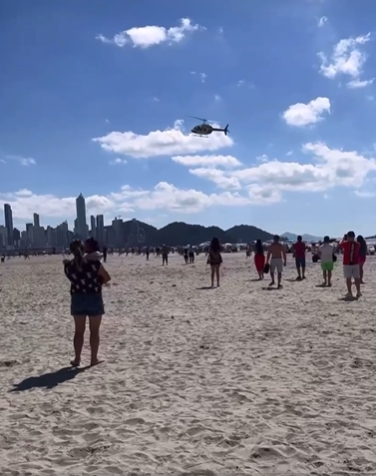 O gesto inesperado gerou um tumulto, com pessoas correndo pela areia para agarrar as notas que voavam pelo ar. Um vídeo compartilhado por um dos banhistas capturou o momento: “Só em Balneário Camboriú para uma pessoa jogar dinheiro pelo helicóptero. Não é possível isso, gente”, disse o espectador enquanto filmava a cena.