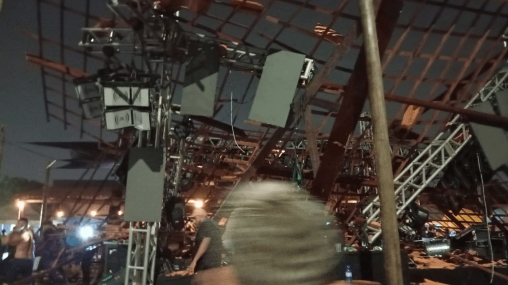 Em determinado momento a estrutura de madeira cedeu e caiu por cima do palco, e embaixo havia várias pessoas. Ambulâncias do Serviço de Atendimento Móvel de Urgência (SAMU) e do Resgate do Corpo de Bombeiros foram acionados e socorreram mais de 30 pessoas para o Hospital de Emergência e Trauma da Capital.