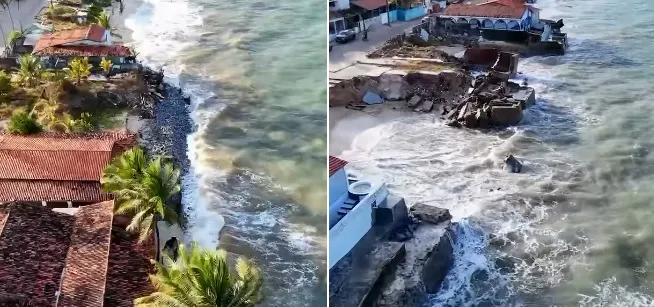 O gestor postou vídeo que mostra as ondas agredindo a costa onde há muitas construções residenciais.