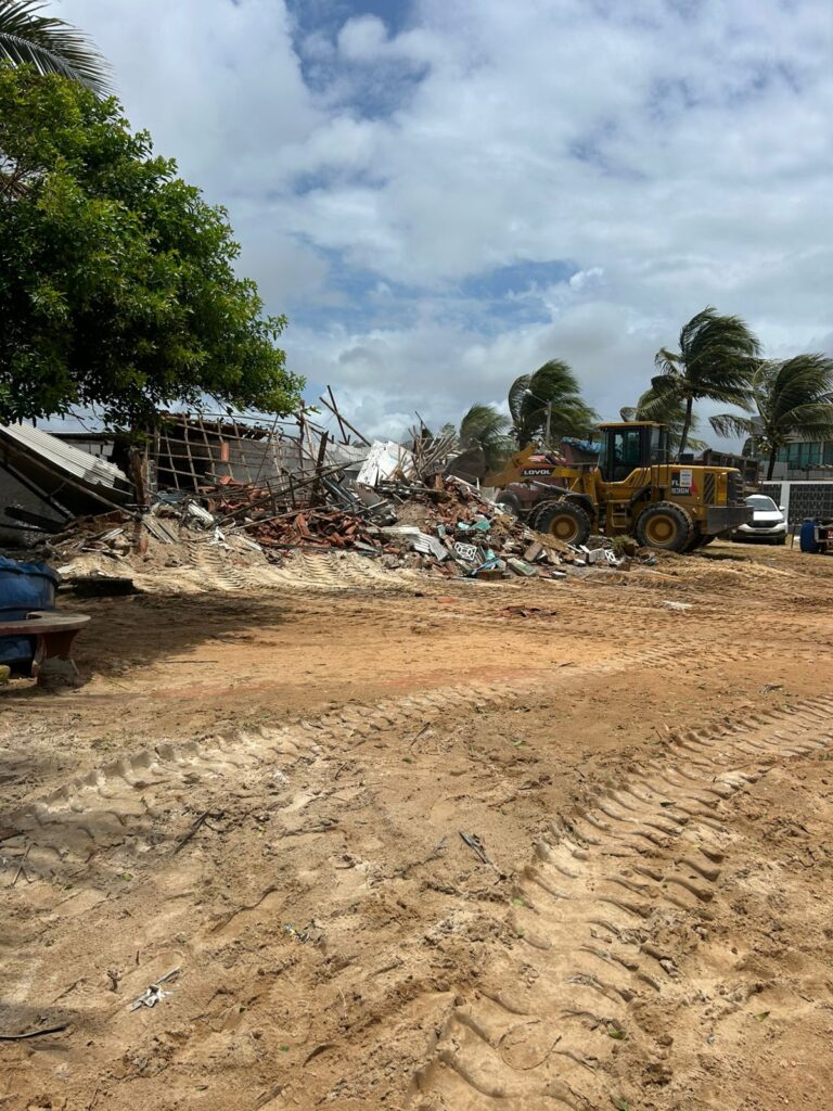 A orla de Lucena, no litoral norte da Paraíba, passou pela 3ª etapa da ação de demolição e remoção de comércios e estruturas irregulares instalados em área de terreno de marinha, nesta quarta-feira (1º). Desocupação integral da faixa litorânea e o reforço do controle sobre a circulação de veículos nas praias do município foi firmada em acordo entre Ministério Público Federal (MPF) e a Prefeitura de Lucena.