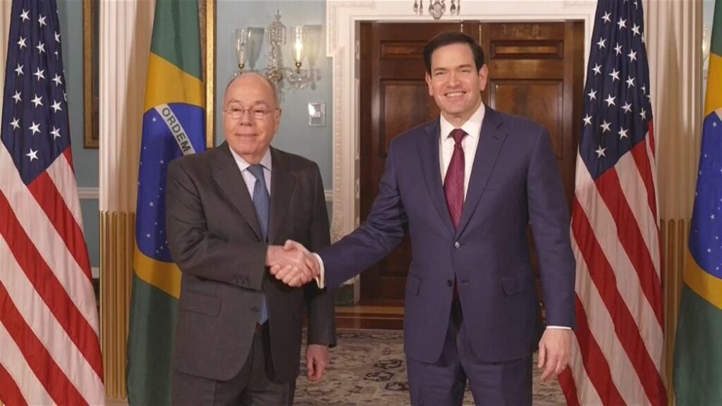 Nesta quinta-feira (13), em Washington, foi realizada a cúpula entre o chanceler brasileiro Mauro Vieira e o secretário do Departamento de Estado dos EUA, Marco Rubio. A pauta principal do encontro foi as tarifas de 50% impostas ao Brasil. A reunião durou cerca de 10 minutos, e os detalhes não foram divulgados.
