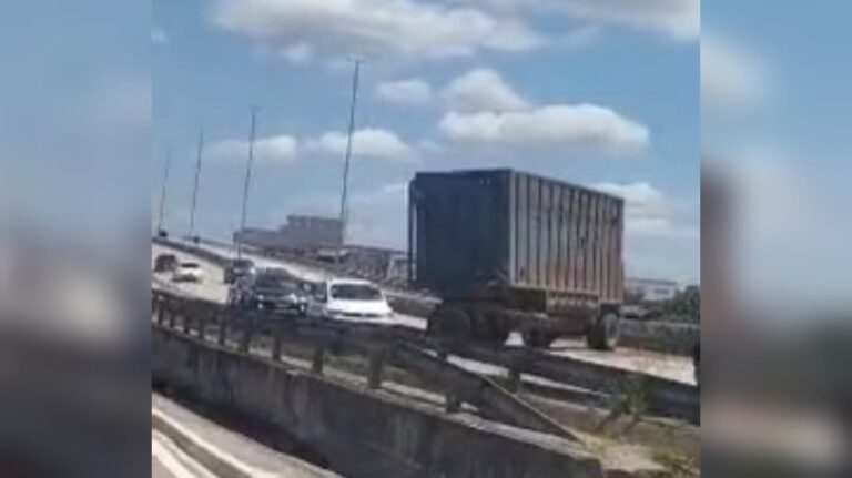 Cotidiano Parte de carreta se solta, assusta populares e interrompe trânsito na BR-101, em Mamanguape